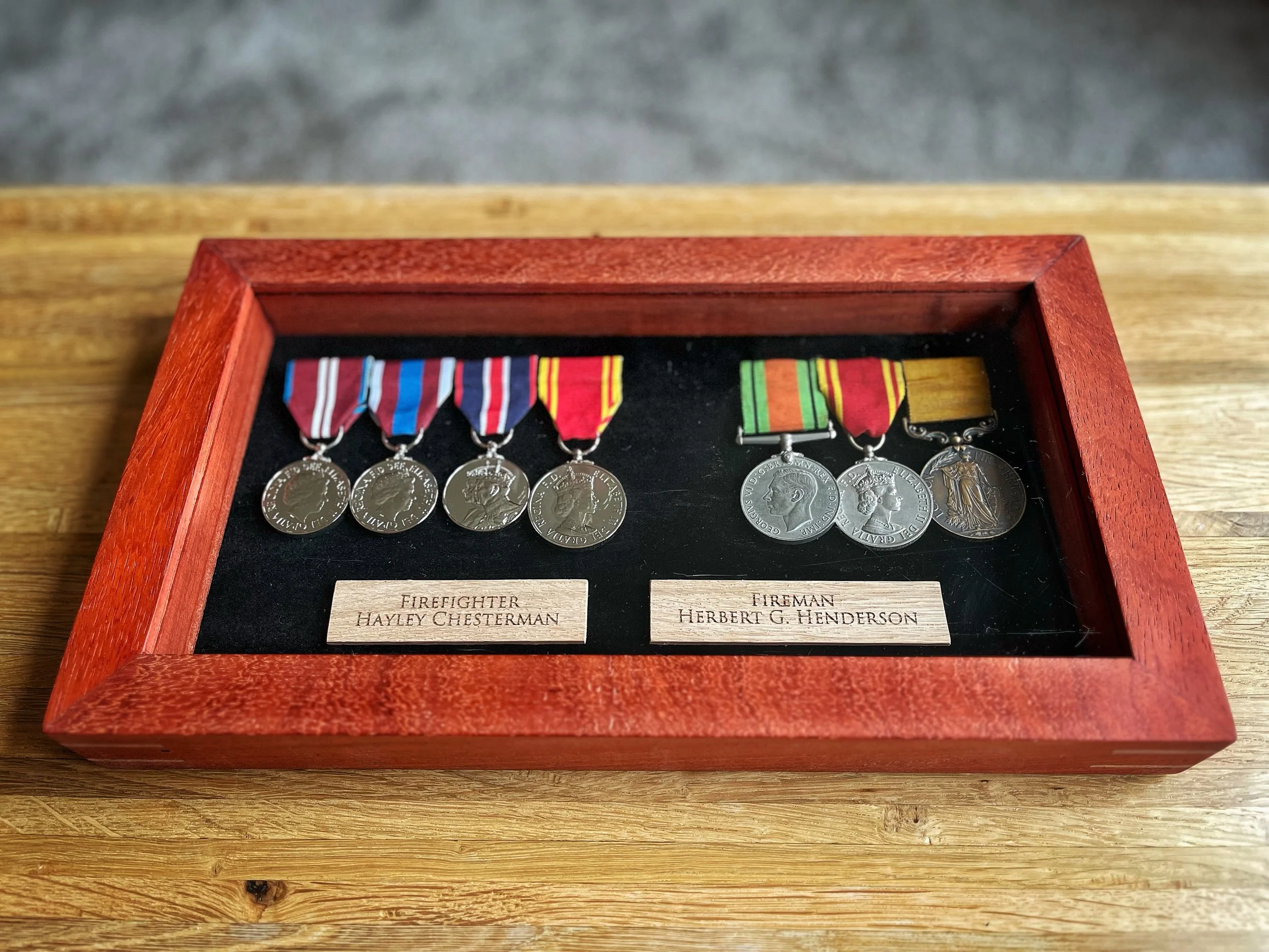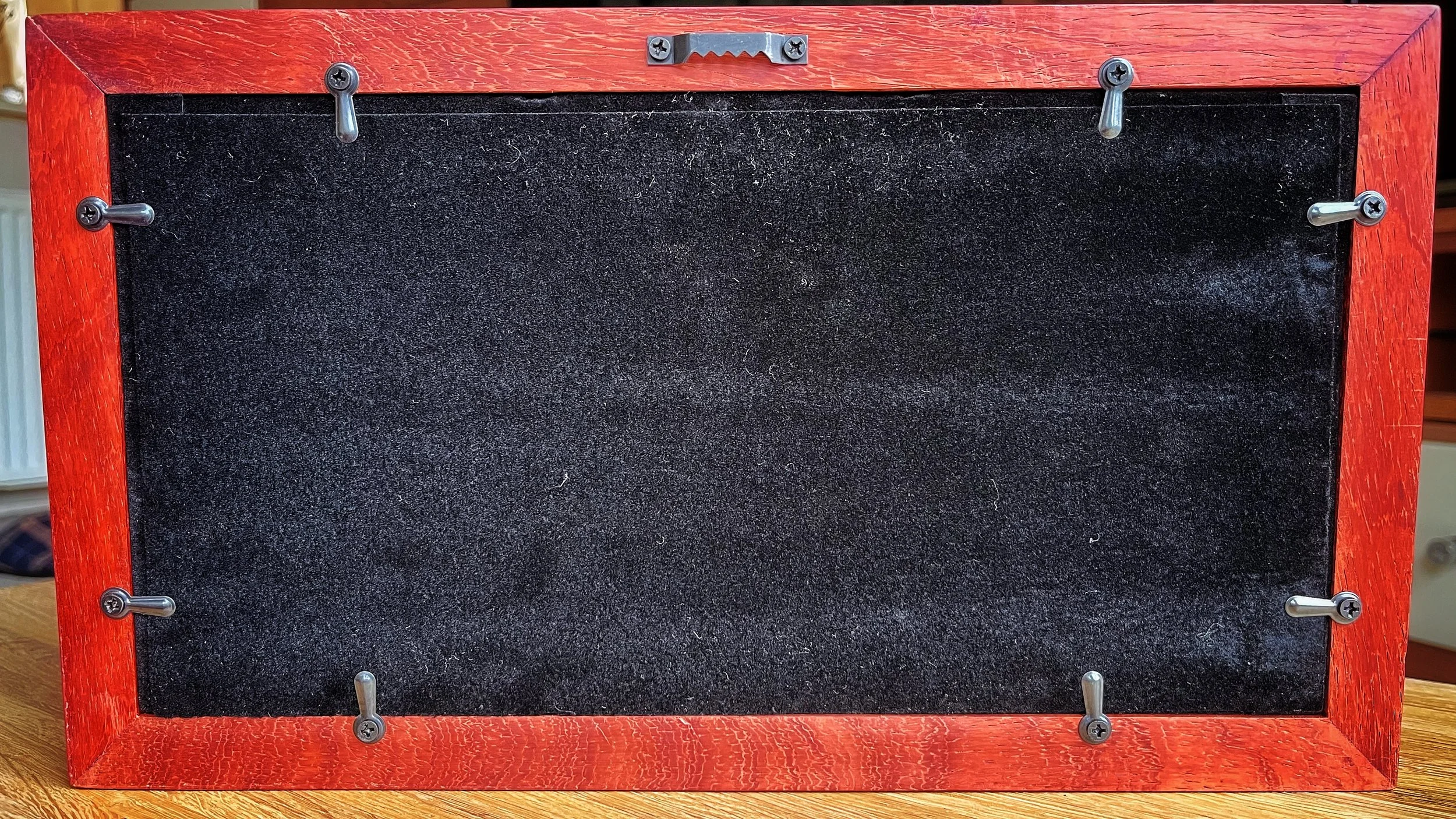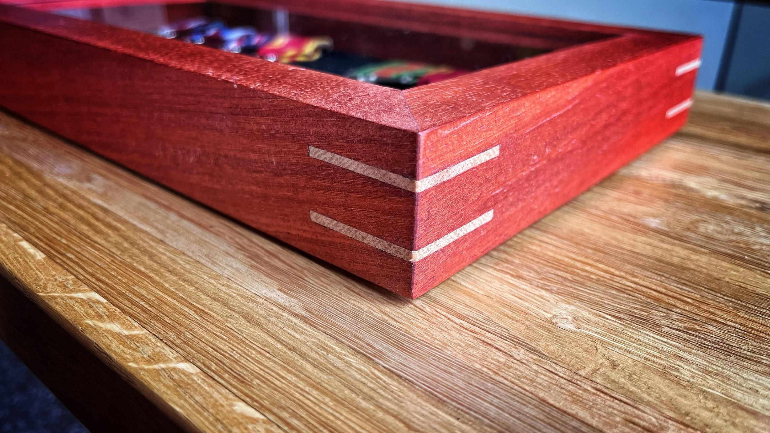 Discover the perfect way to showcase your treasured items with our custom made-to-order box frames. This particular box frame was Crafted from rich West African padauk wood with durable oak splines and a luxurious velvet backing. Each frame is meticulously handmade to combine elegance and durability. Elevate your displays with a frame designed just for you.